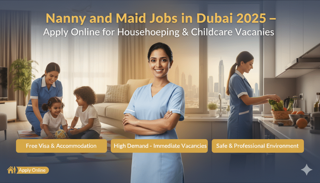 Nanny and maid jobs in Dubai, Dubai nanny visa, housemaid jobs UAE, live-in maid jobs Dubai, caregiver jobs Dubai 2025, nanny salary Dubai, how to apply for maid job in Dubai.